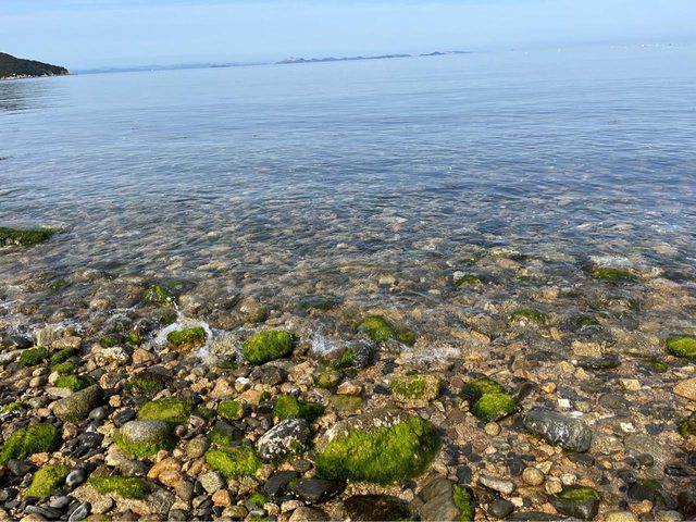 在沙洲道上聽著潮汐的聲音、看著長出綠毛的石頭享受片刻的悠閒(14:50~15:15)。回