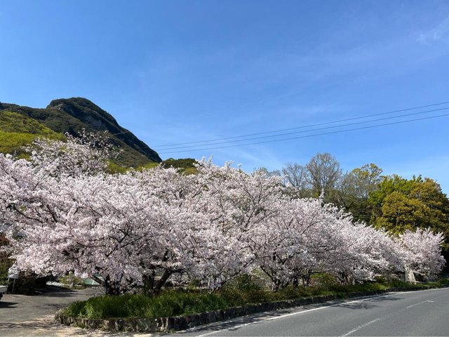 14:35,在天狗岩丁場旁的路邊,一整片櫻花襯著藍天,很是舒心。