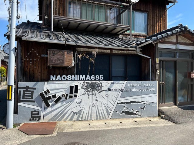 回飯店領行李,約12:30到宮浦港附近用餐、吃霜淇淋。再到港邊的景點繞繞,住吉神社 、直島錢湯、直島展覽館。