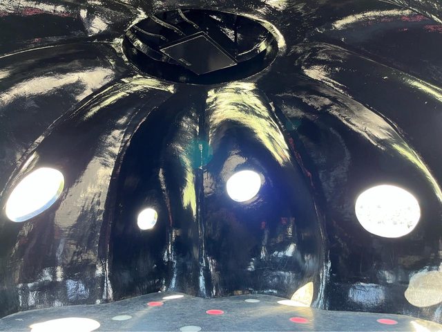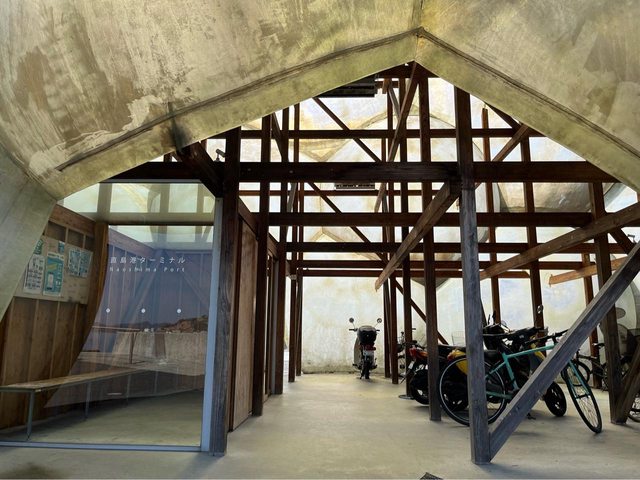 我們搭到本村(小客船碼頭)下車,就看到由幾個球體堆疊起來的航站,內部還可以停單 車。
