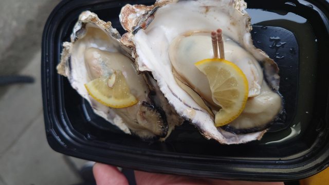 回到表參道的商店街繼續買土產吃現烤牡蠣。