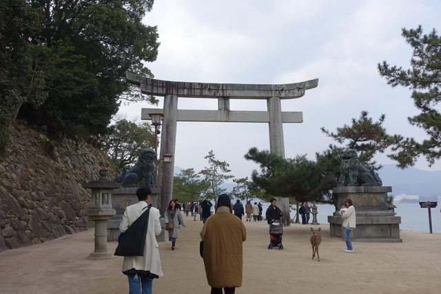 繼續向前走,就會嚴島神社參道的鳥居及巨大的狛犬在鎮守,