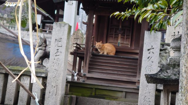 然後在艮神社,終於被我們遇到第一隻尾道貓咪,也是唯一遇到的一隻,