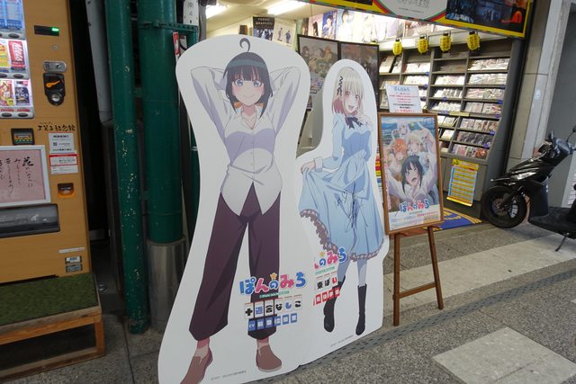 街道兩旁還擺了許多動畫人物看板,原來是2024冬季新番「碰之道」的人物,