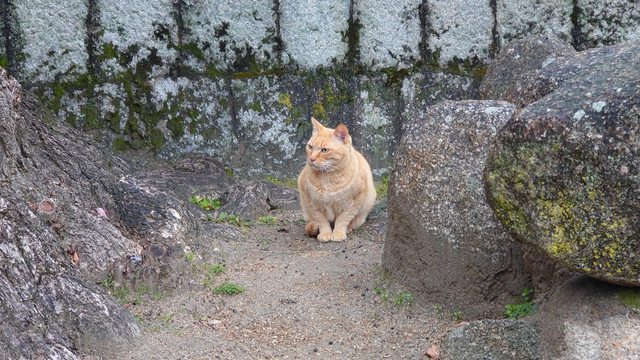 可惜這隻貓不親人,都躲得遠遠觀察我們。