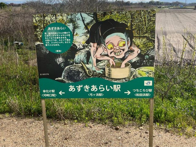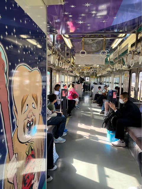 短17.9公里的路程要花49分鐘。不過該列車都有鬼太郎相關人物的塗裝,每個站也都有妖