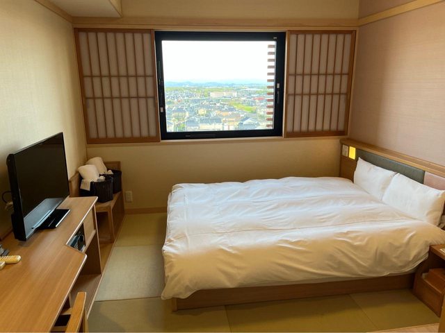 飯店幫我們安排11樓面市景的房間,視野很好;另一面則可看到境水道及美保關町。