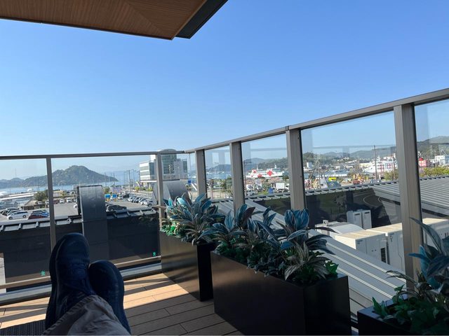 吃飽回房間休息一下,躺在房間陽台的躺椅上悠閒的欣賞早晨港邊風光。