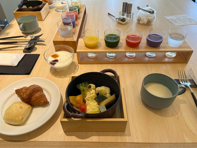 今天是預約8點吃早餐(有7、8、9三個時段可選),最吸引目光的就是五杯色彩繽紛的果