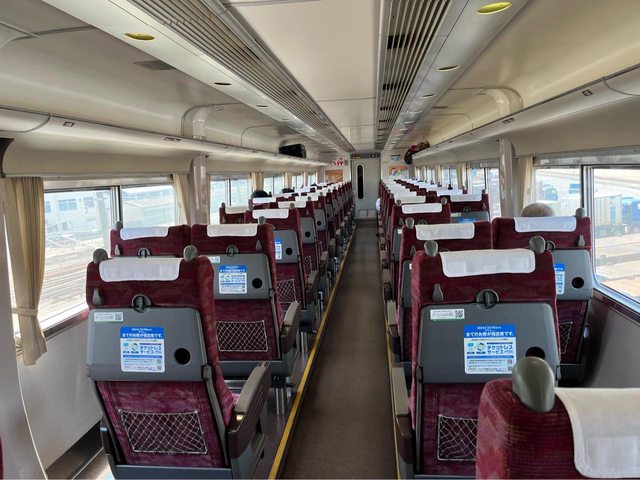 搭特急自由席,因為過渡時期所以是上車找空位坐,還好週日前往山陰的人很少。不久有