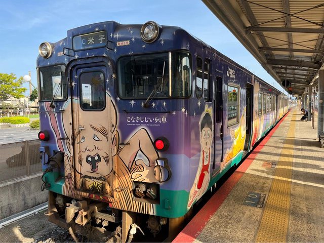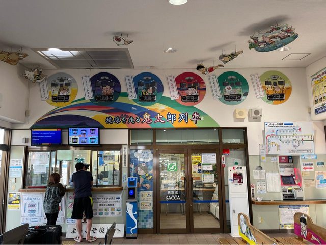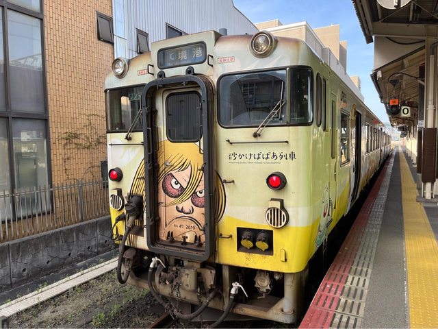 怪名稱(米子是鼠男站,境港是鬼太郎站),車上的站名廣播則是鬼太郎的聲音,蠻有趣