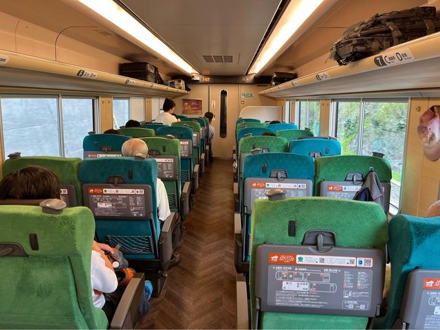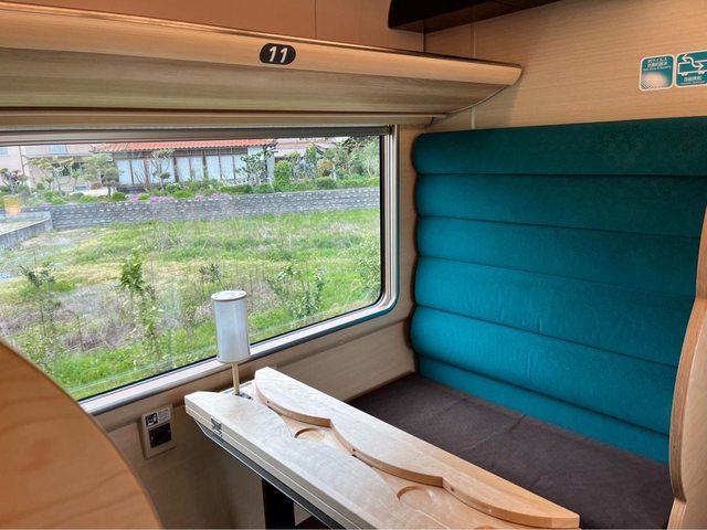 車了。不過這台八雲號應該是新車、前面的車廂還有類似觀光列車的座位區。