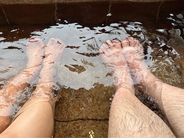 12:40回到境港駅,先泡一下飯店旁的免費足湯,便搭13:34出發、14:19到米子的JR。