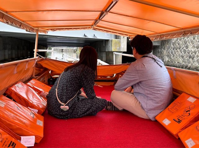 音導覽。完整一趟約3.7公里、55分鐘,會經過16座橋,因為有些橋比遊覽船屋頂低,所