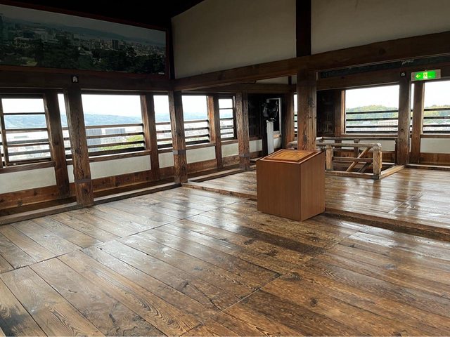 進天守閣要脫鞋,在2樓掃碼後(票價680円)爬著陡梯上去。今天是平日,遊客不多,天