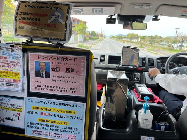 公民館下車,接著再前往由志園、10:33抵達。這種新型公車沒有時刻表或固定路線,是