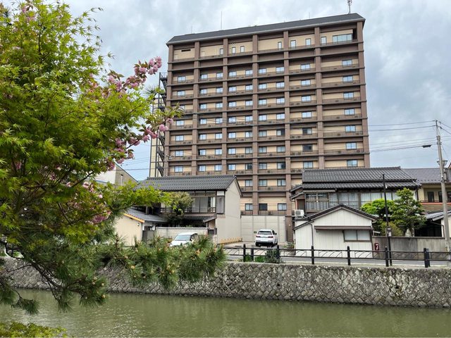 從松江駅坐到榮橋只要6分鐘,下車後就看到今晚住宿的飯店-御宿野乃松江(2泊、含早