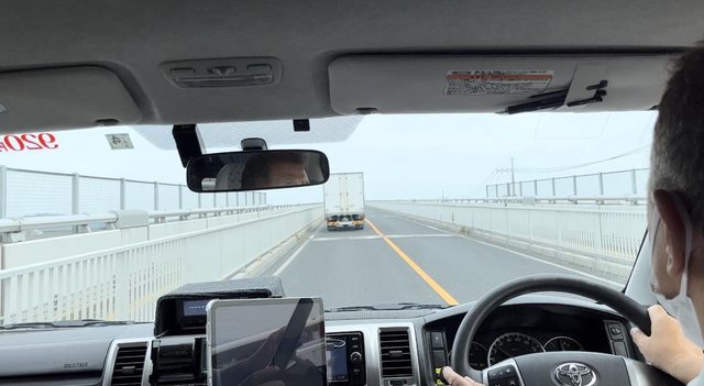 上車後我先付錢,司機大哥很健談,要經過江鳥大橋(頂部達45公尺的陡峭斜坡,常是汽