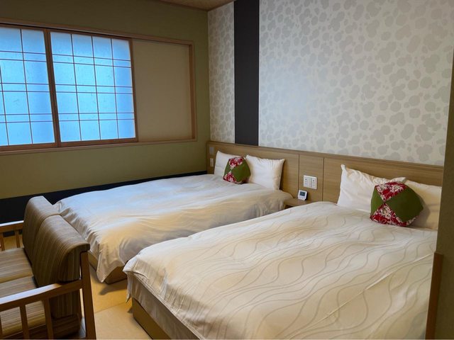 Check in時,櫃檯小姐說幫我們升等為大房(兩張雙人床);雖然在2樓看出去沒風景,