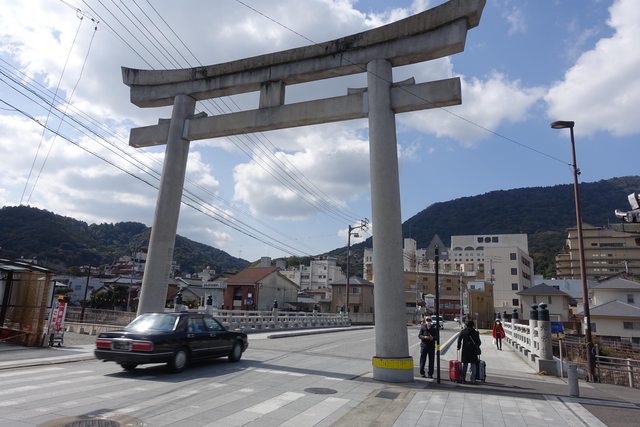 一出琴平站就看到一個大鳥居,不過離金刀比羅宮的參道還有一段距離,