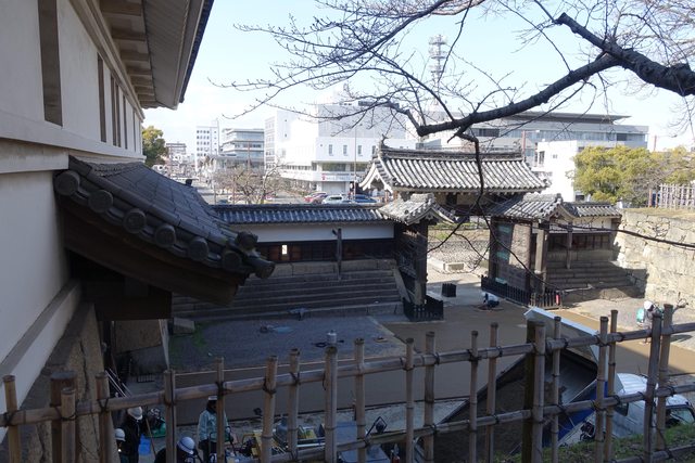 當我們走到丸龜城大手門(一之門、二之門),因為在維修,只能繞道從別的門進入,