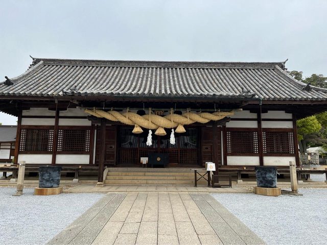 要爬幾段樓梯才能到神社,主祭神為宗像三女神。從繪馬殿望出去的景色則略被擋住。