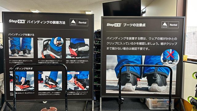 這邊最棒的點是裝備租借提供的單板雪靴全部都是step-on的款式,對初學者穿脫來說會