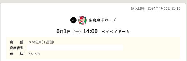 標題[讓售] 6/1 軟銀對廣島 paypay巨蛋 門票