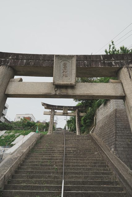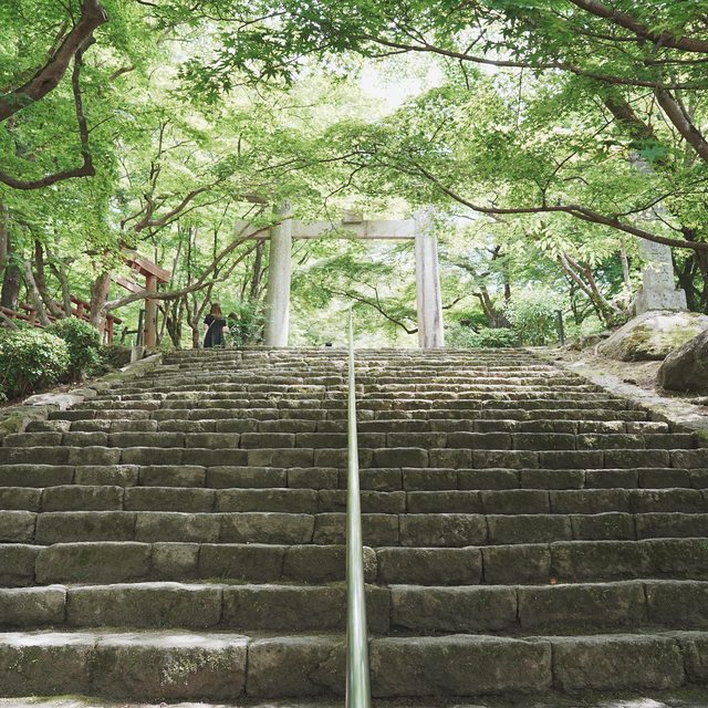 過了鳥居,還要爬一段階梯才會到竈門神社