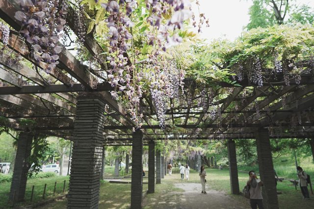 除了福岡城跡,舞鶴公園的一大看點是四季的不同花卉。抱著想看紫藤的心情走到藤園,
