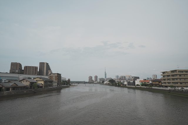乘坐地鐵到室見,出站走幾步路會先經過室見橋。從這裡往北邊看,能夠看到遠方的福岡