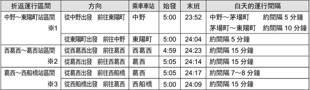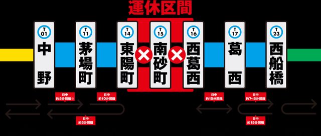 被拆成西船橋~葛西及葛西~西葛西兩段運行