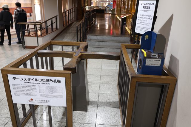 早年的旋轉式驗票閘門(可以投幣實際體驗,硬幣會退回)