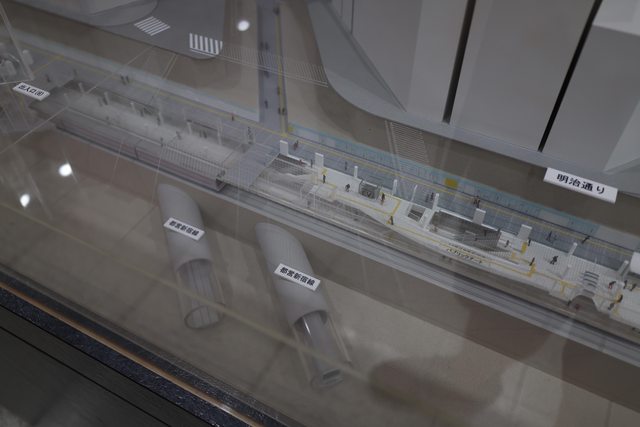 除了剛剛提到的、與地鐵同款的驗票閘門,此處也放了一整面櫥窗的列車模型