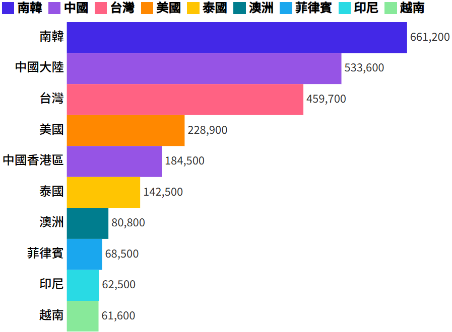 → whitelady : 南韓人數一直穩坐第一,但消費總額印象中台灣最多 05/16 15:19