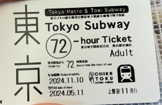 東京地下鐵三日券*1,有效期限到2024.11.10