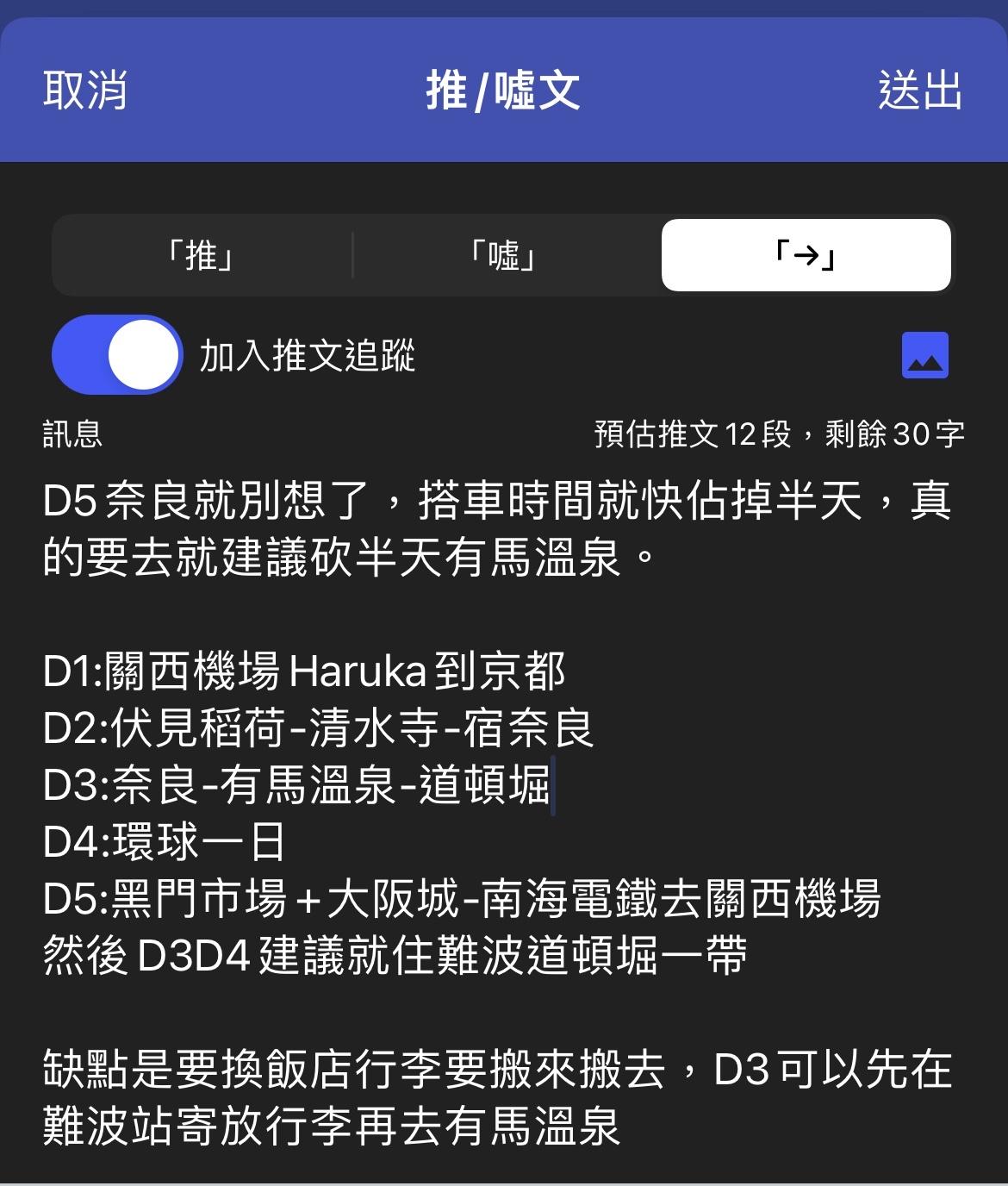 推 th2113 : 你不如D1直接拉到京都住,這樣第二天省時間跑行程, 05/20 08:50