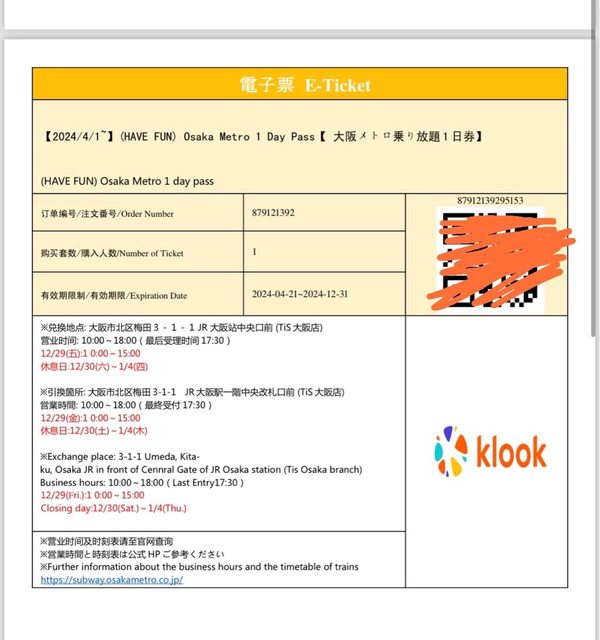 標題[讓售] 大阪地鐵巴士乘車一日券