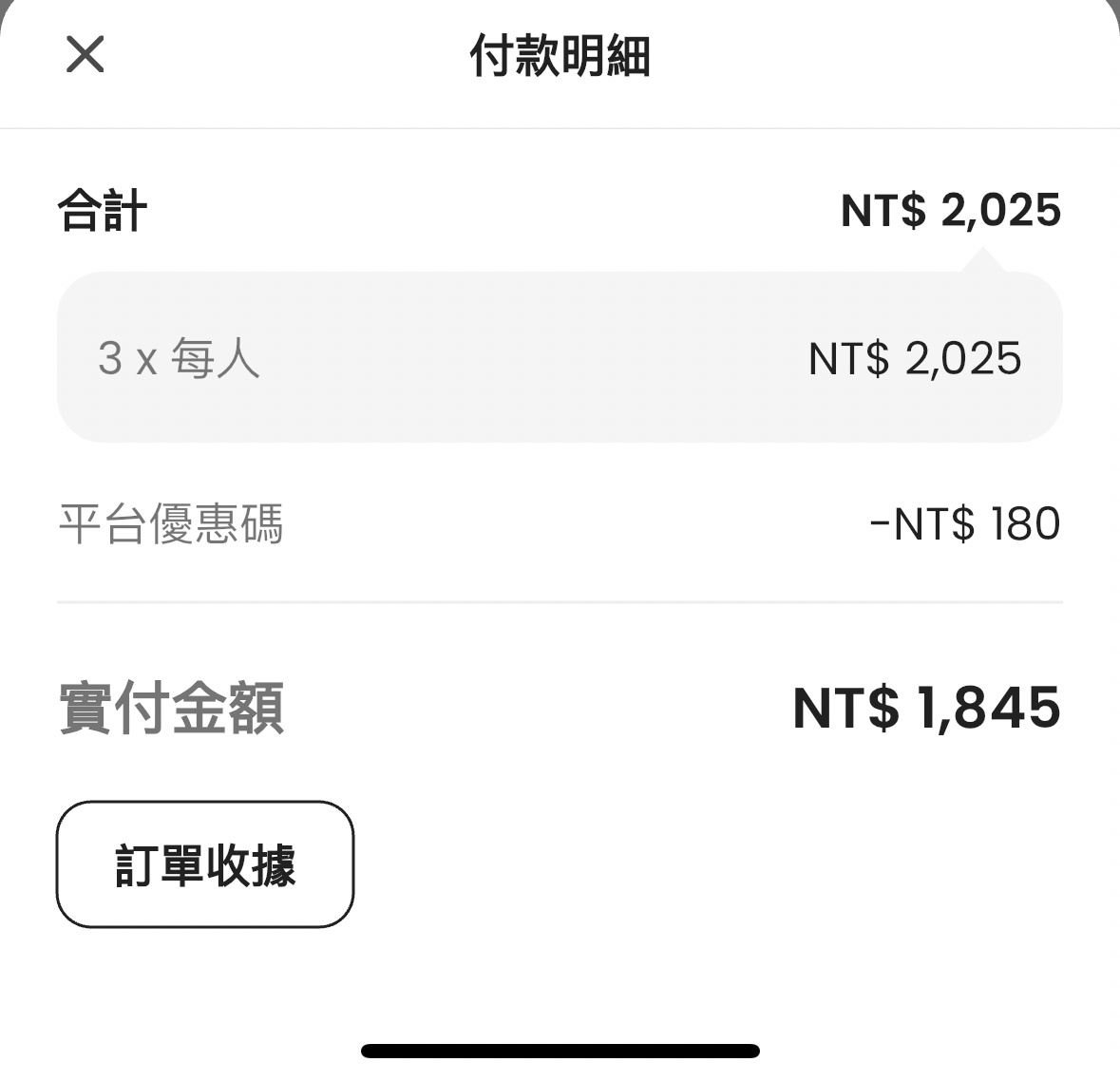3. 此物品由您買入的價格:1845 NTD