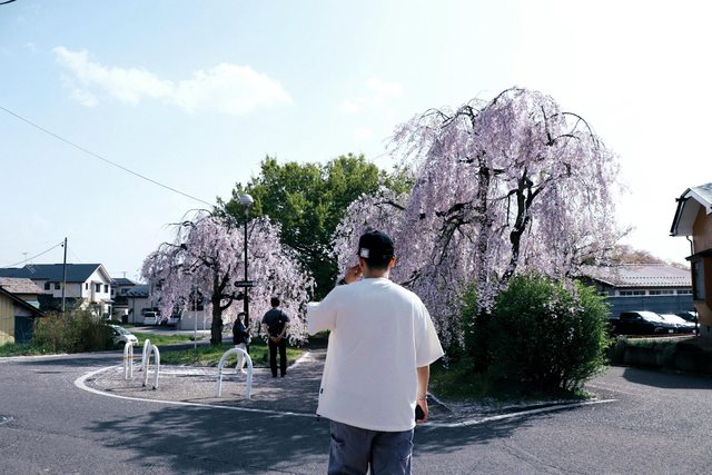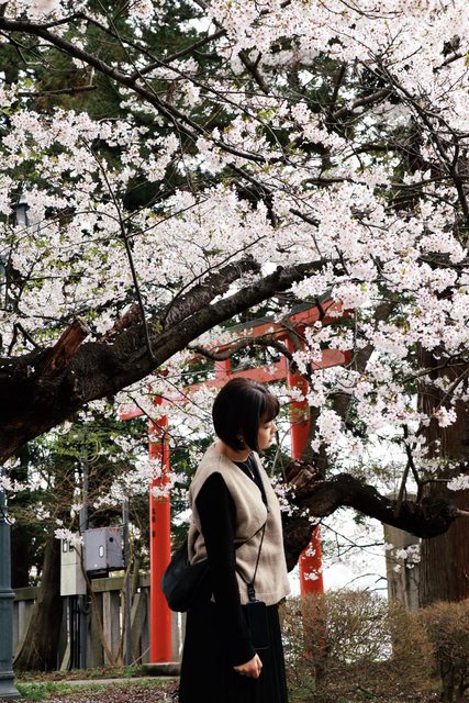 已經開始吹雪,但選幾個拍攝角度還是可以拍攝到不錯的櫻花