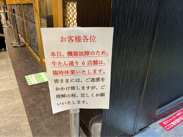 原本想在車站牛舌通吃晚餐,但今日店家因設備故障暫停營業。