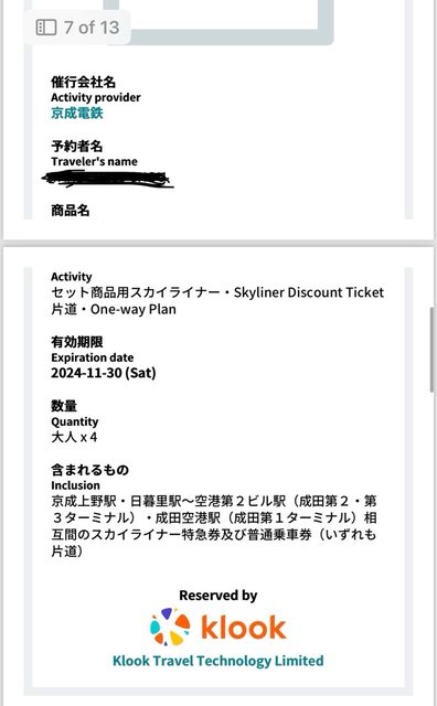 (成田機場-東京市區 or 東京市區- 成田機場)