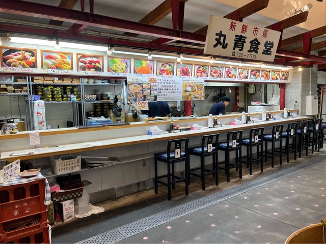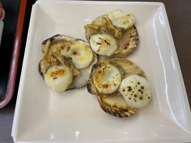 早上往車站的路上,選了在新鮮市場(大樓)地下室的丸青食堂,點了帆立の貝焼き味噌