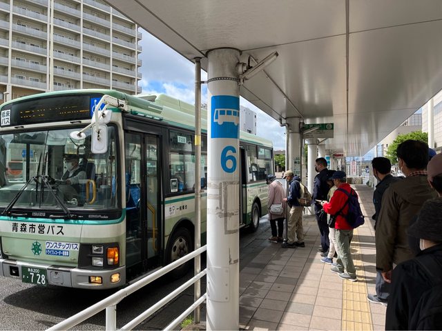 在車站前的6番公車亭搭S51號巴士(09:01),09:26抵達青森美術館。