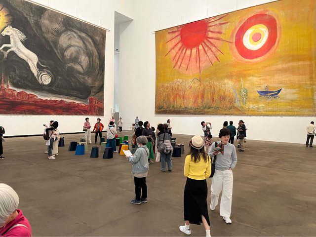 09:30開館,購票進場後(900円),先是一個很大的空間、四面掛著巨幅畫作的展間。