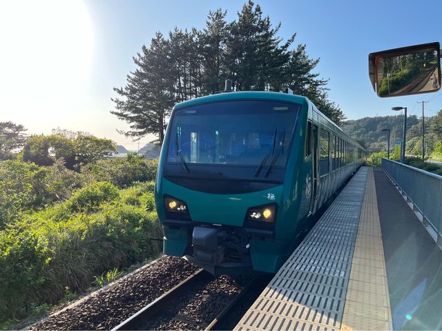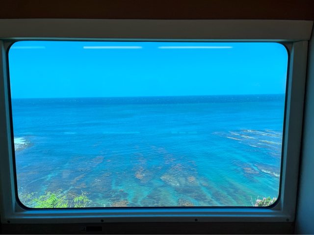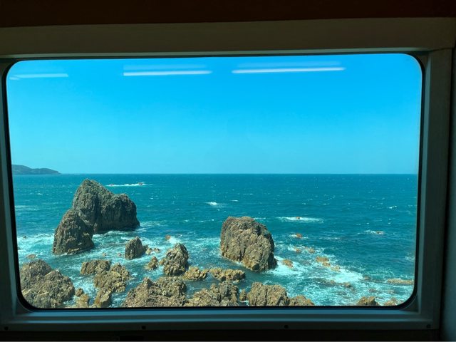 接著往十二湖的這段路線是行駛在日本海邊,透過大面車窗看出去的海景迷人。