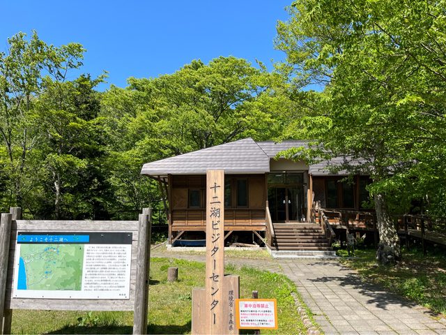 越口の池旁邊是十二湖遊客中心,可以稍微坐著休息、欣賞介紹十二湖四季不同美景的影