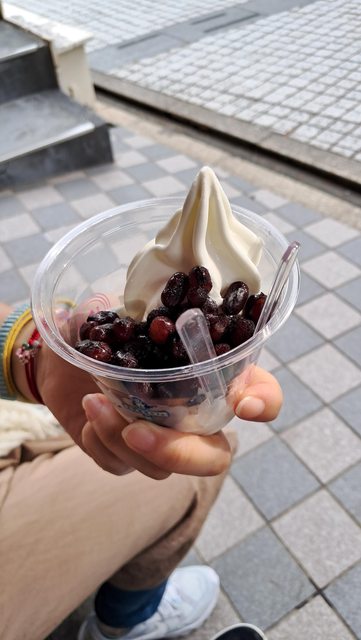 家分店賣的不盡相同,我們早就打定主意要吃白桃口味及草莓口味,就非這家莫屬。不得不