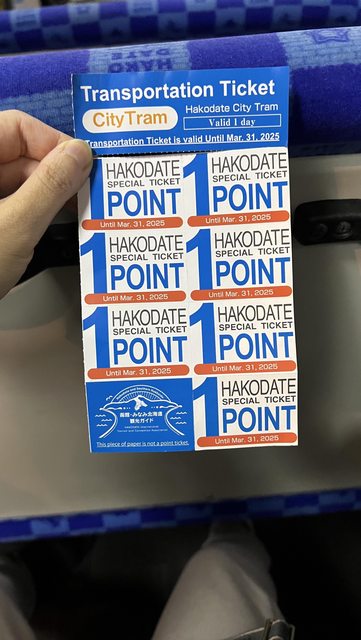 1. 讓售品項:函館市電一日兌換券、函館景點點數券7 點 (可兌換函館山纜車門票)