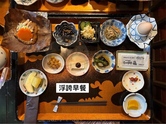 早餐時間7:30,小老闆娘一樣會在餐點準備好後到走廊請大家用餐餐點依然非常浮誇,看起來份量都少少的,但整套吃下來很有飽足感,有各式小菜以及飛騨地方的鄉土料理-朴葉味噌燒,每道都是白飯殺手,飲品有咖啡跟茶自己取用